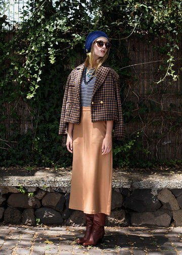 Un conjunto ideal!.La falda Jackie y la cazadora a juego. La falda sienta de maravilla y con la cazadora milicia el conjunto es perfecto. Además, me puse unas zapatillas y funcionó! Así que encantada con mi compra 🧡