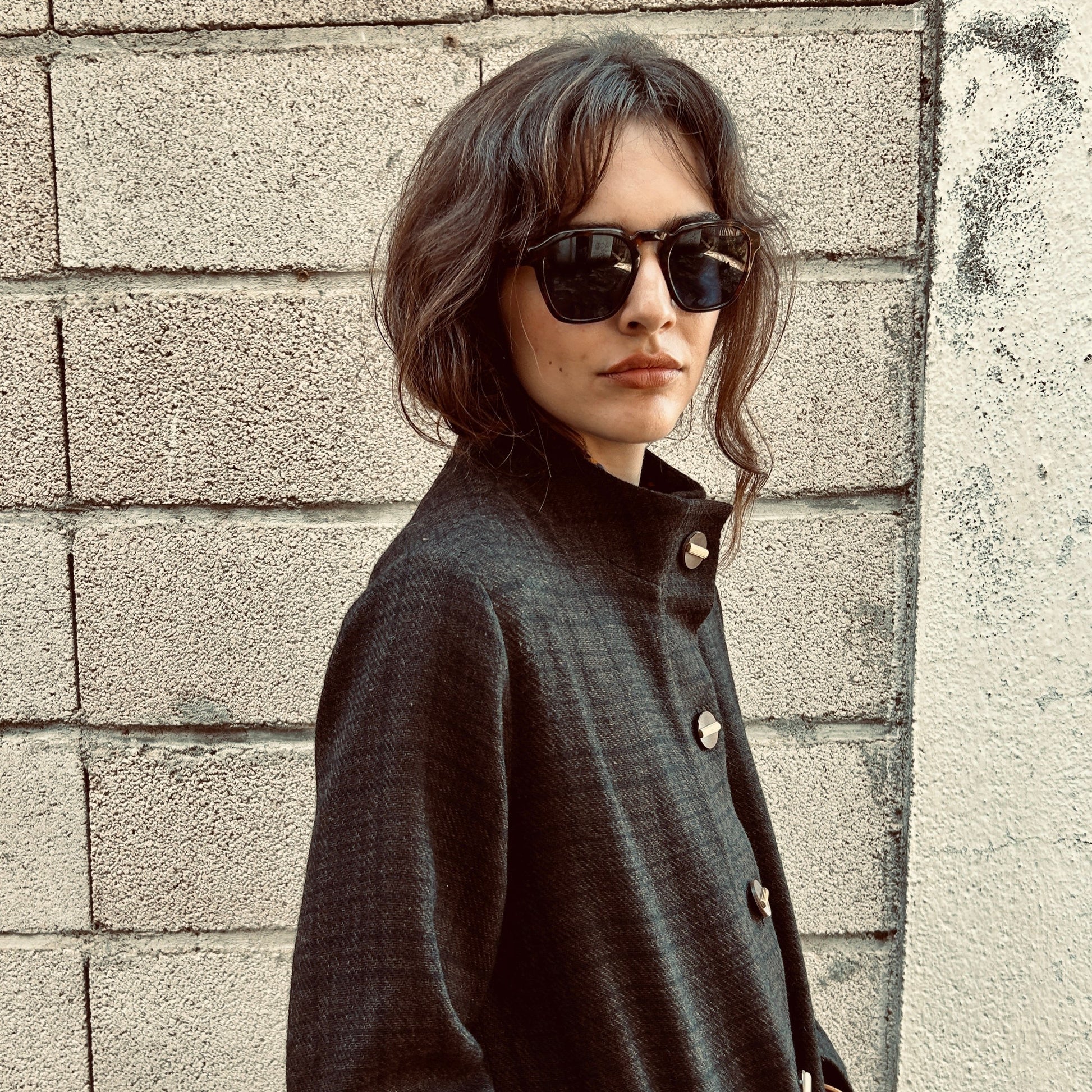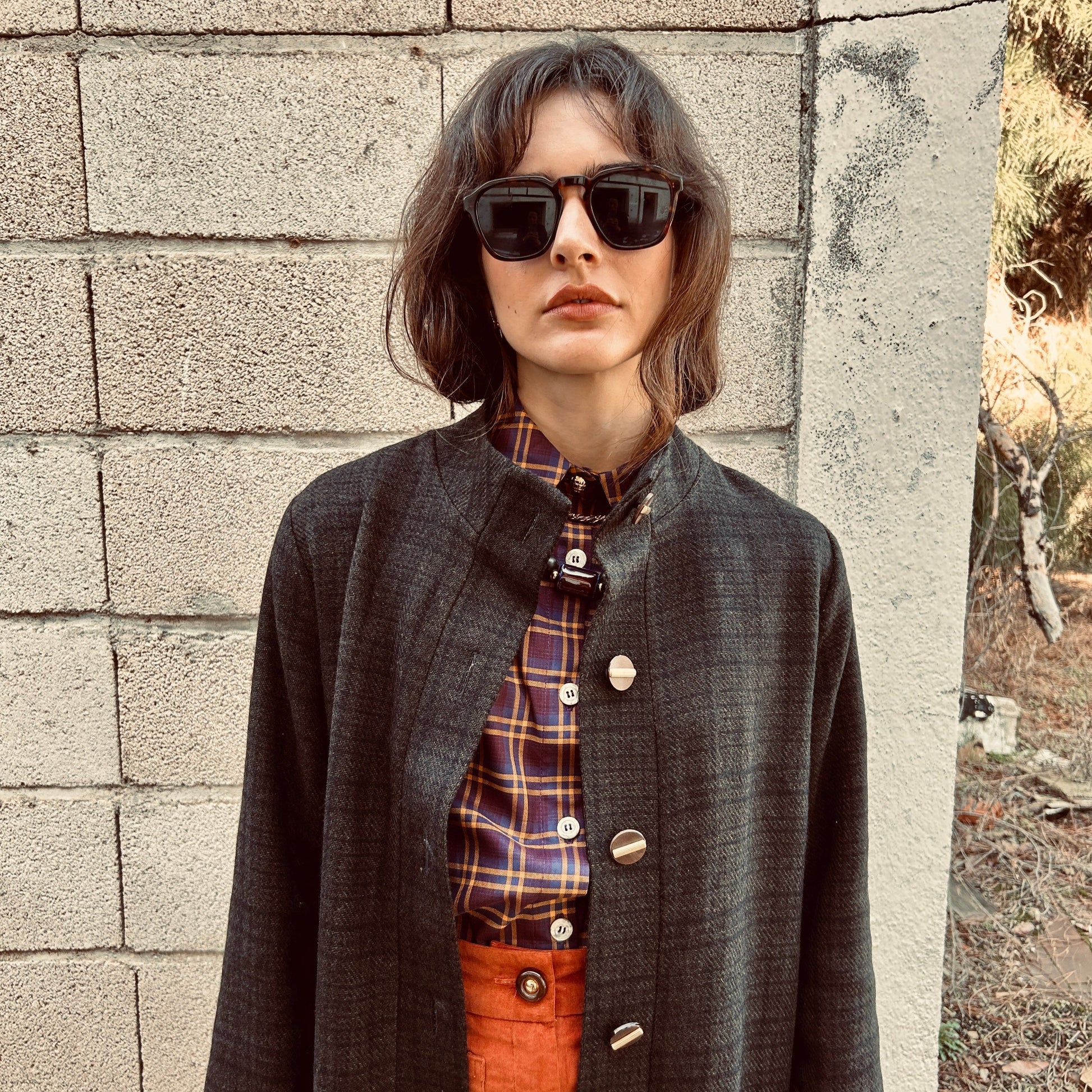 Milicia coat made with 30% blue and beige marbled wool, buttons* from Death Stock and handmade vegetable silk and organic dye ribbons from traditional Moroccan craftsmanship.