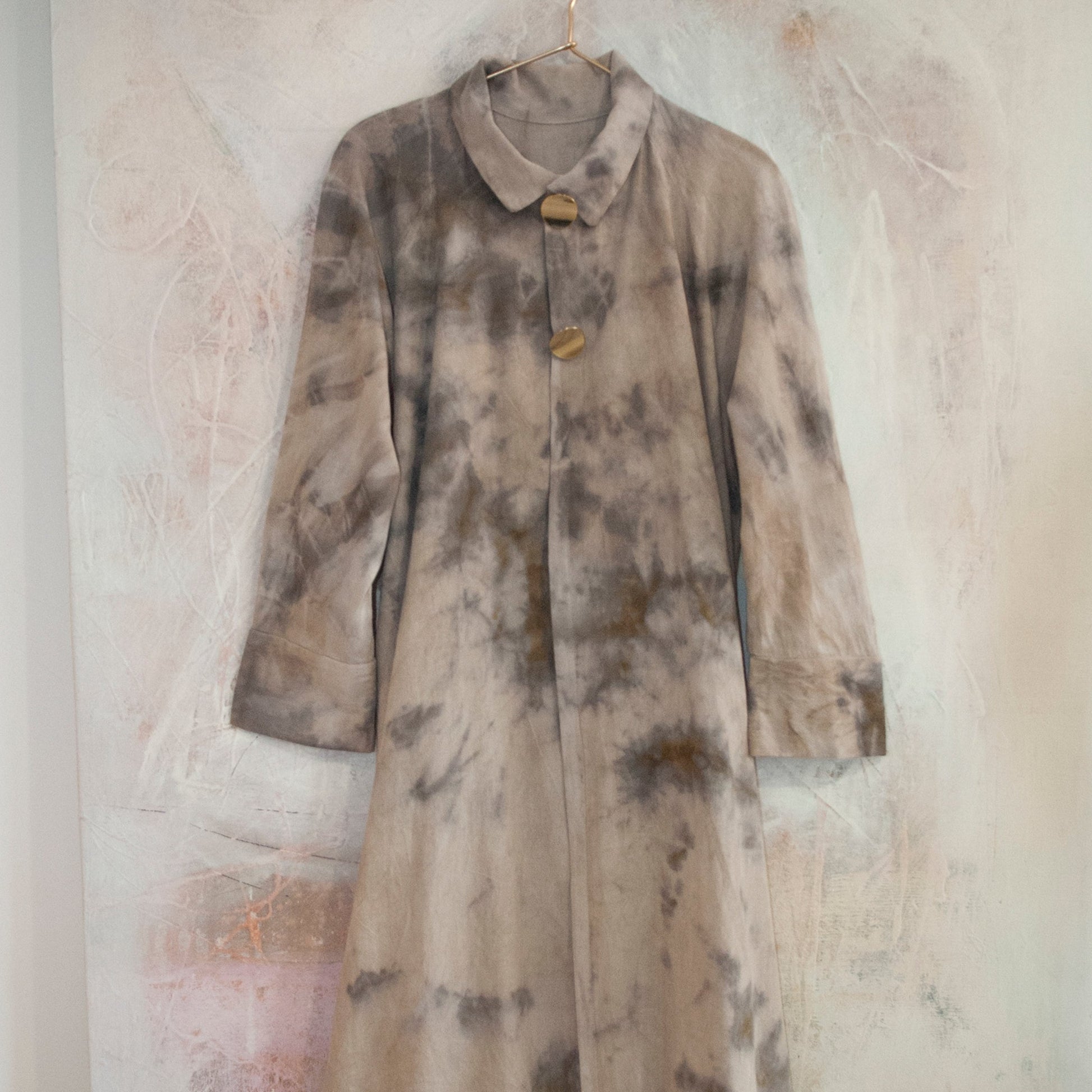 100% organic cotton overcoat, hand dyed with natural dyes and made in women's workshops in Ethiopia.