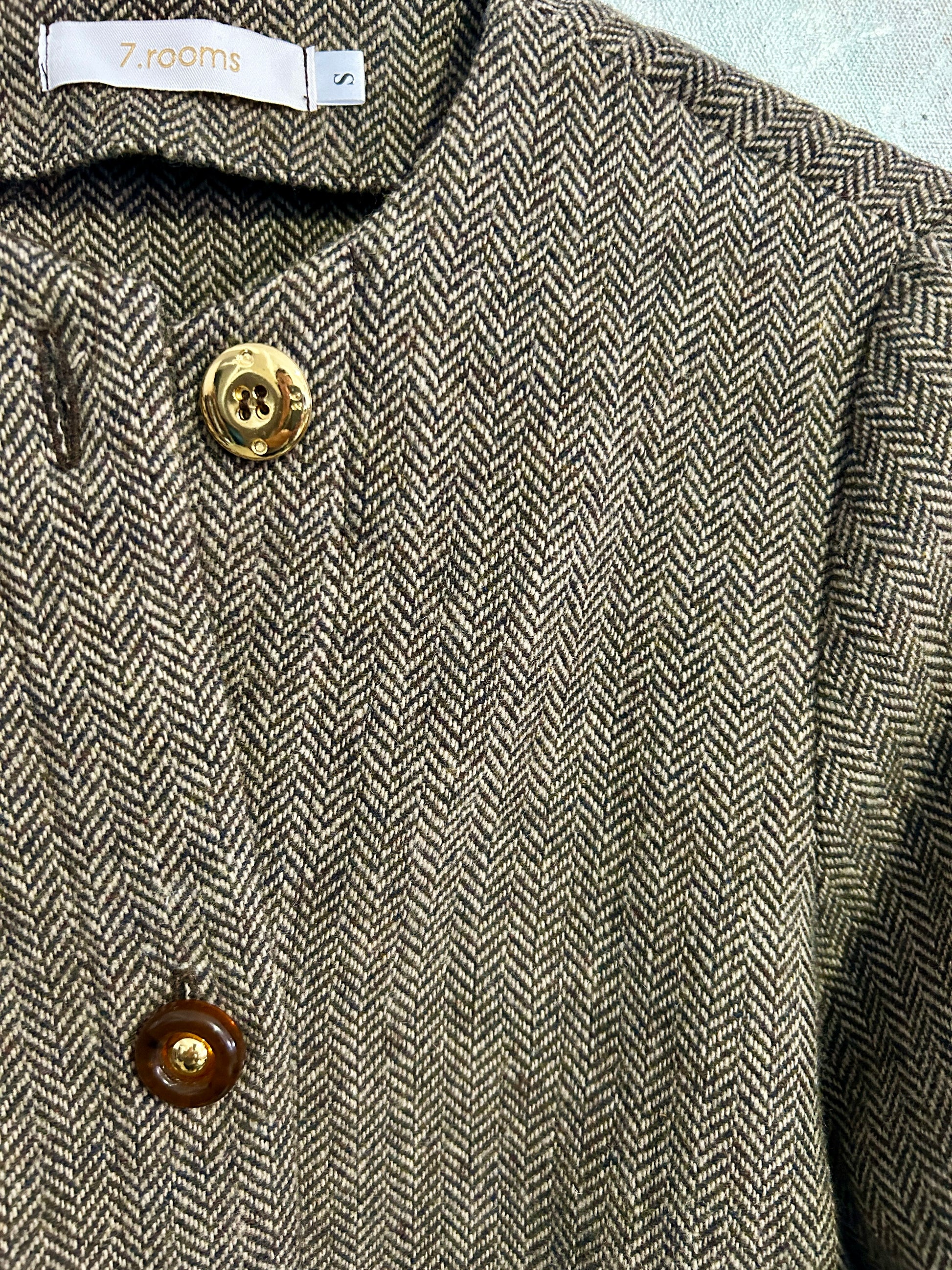 De edición limitada en este tejido y confeccionado en talleres locales con botones antiguos.