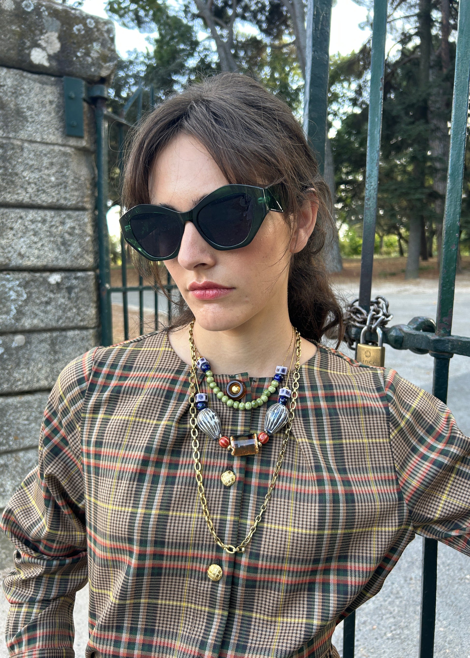 Nota: Algunos collares se han alargado para la campaña, es posible que el que recibas sea más corto que el que ves en las fotos. Si necesitas alargarlos, te podemos dar algunos trucos de estilismo.