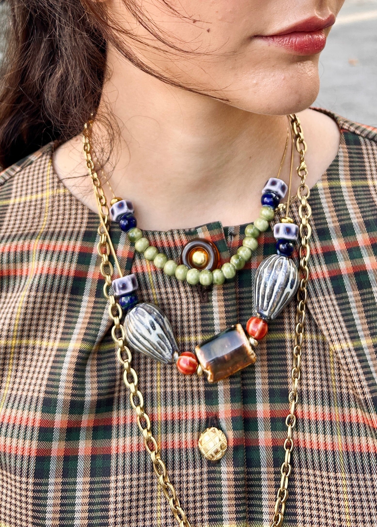 Nuestros Collares son capaces de levantar cualquier LOOK. Están hechos de cerámica pintada y se engarzan a mano.