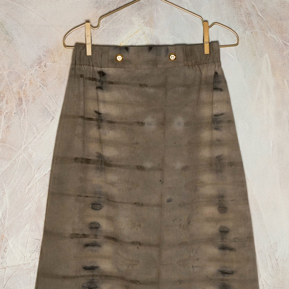 Falda 100% algodón orgánico teñida a mano con productos orgánicos, botones* procedentes de Death Stock y cintas hechas a mano por artesanos de Marruecos.