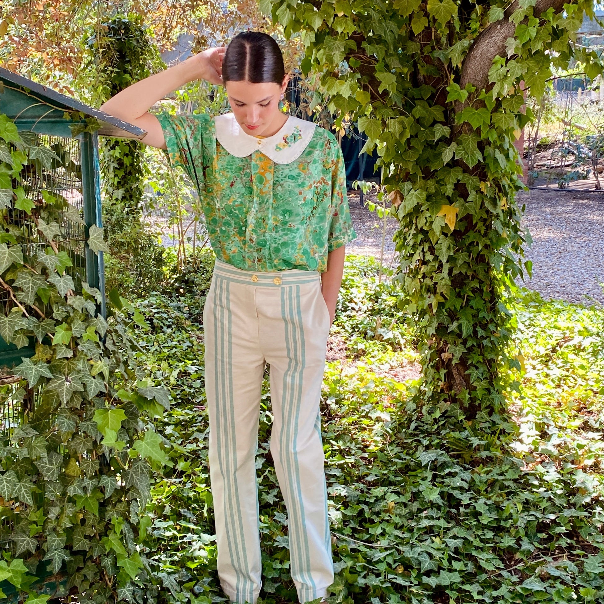 *Como trabajamos con botones y cintas procedentes de antiguas mercerías, es posible que la prenda que recibas no tenga exactamente los mismos botones o cintas que en la fotografía, pero tendrá unos similares.