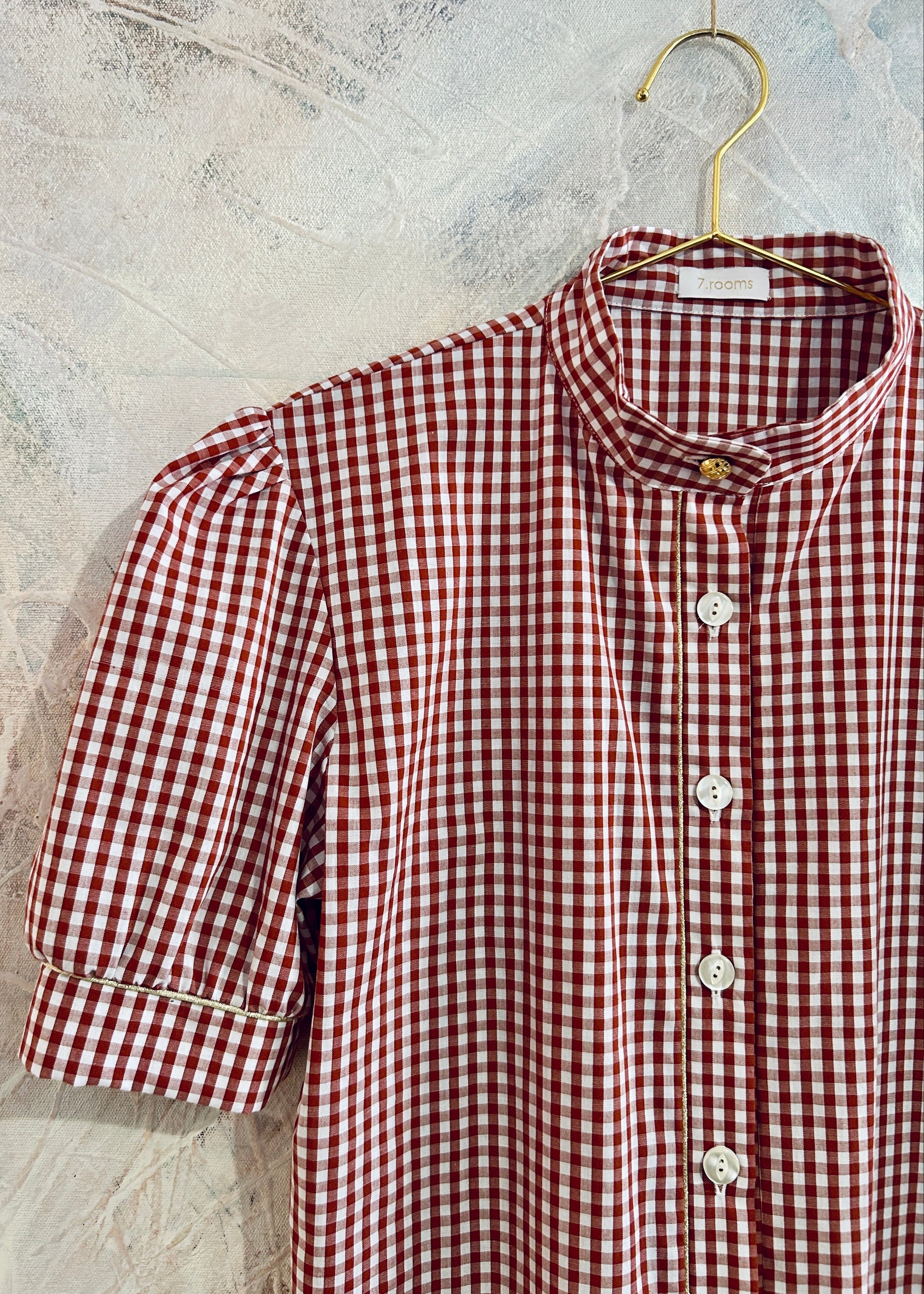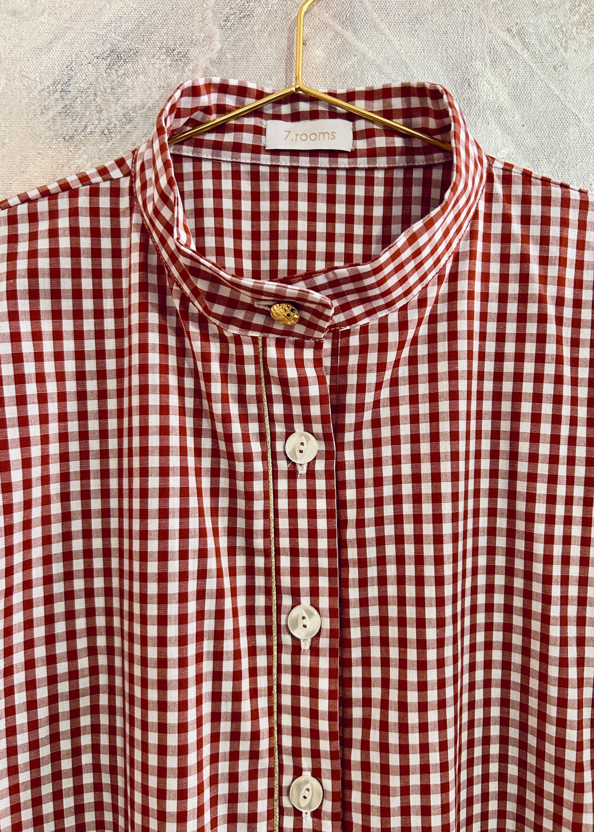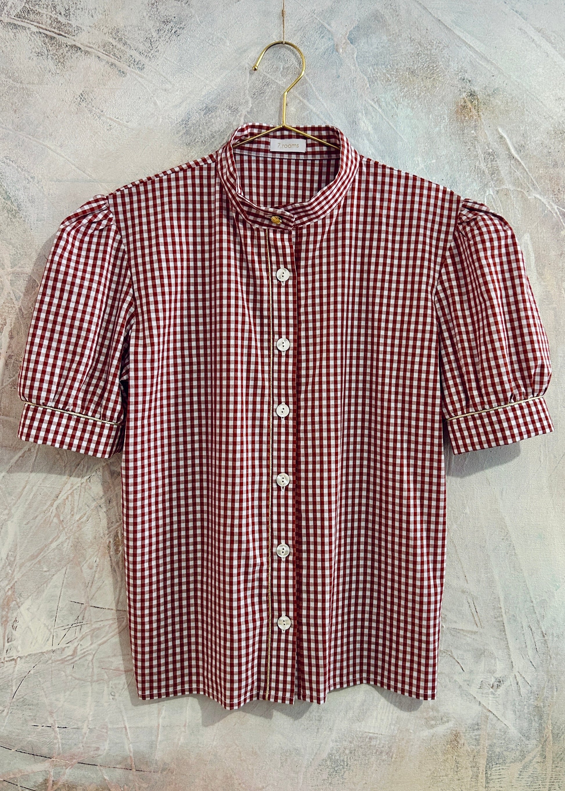 Blusa mangas abullonadas y cuello mao, con botones* de antiguas mercerías.