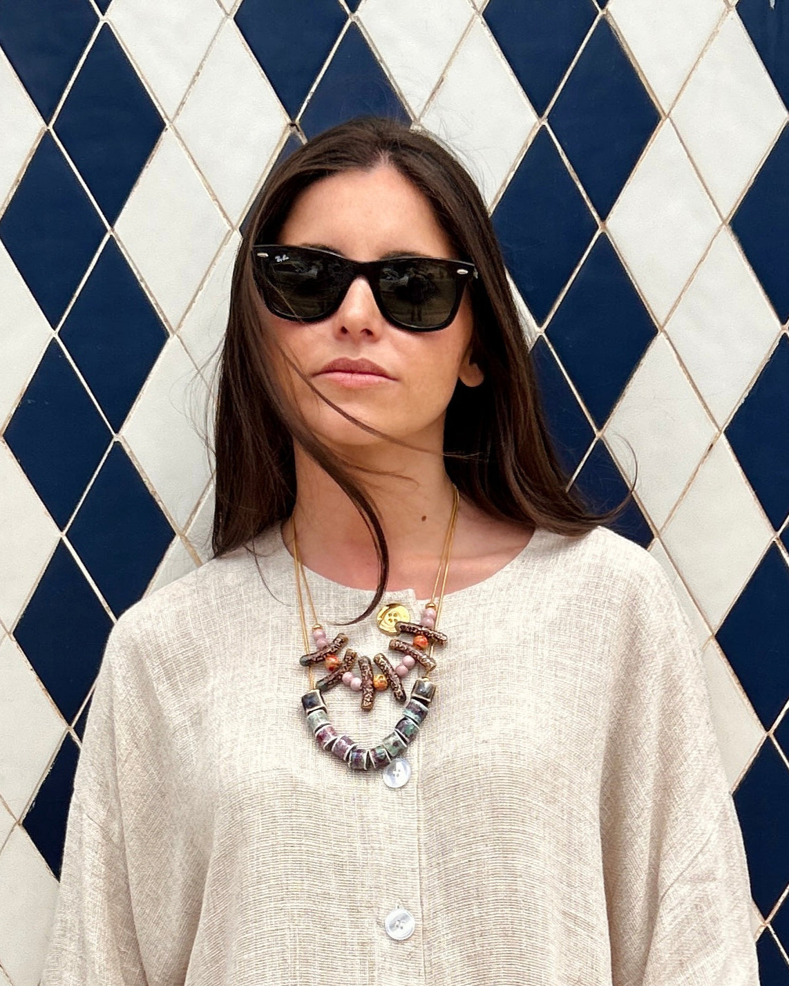 *Como trabajamos con botones y cintas procedentes de antiguas mercerías, es posible que la prenda que recibas no tenga exactamente los mismos botones o cintas que en la fotografía, pero tendrá unos similares. .