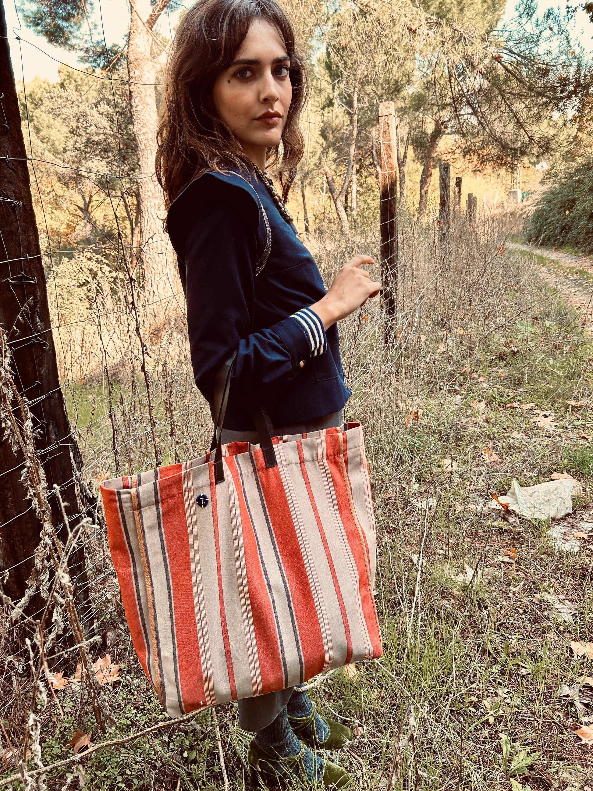 Nuestros bolsos están confeccionados en tela de algodón 100% con asas de PIEL marrón