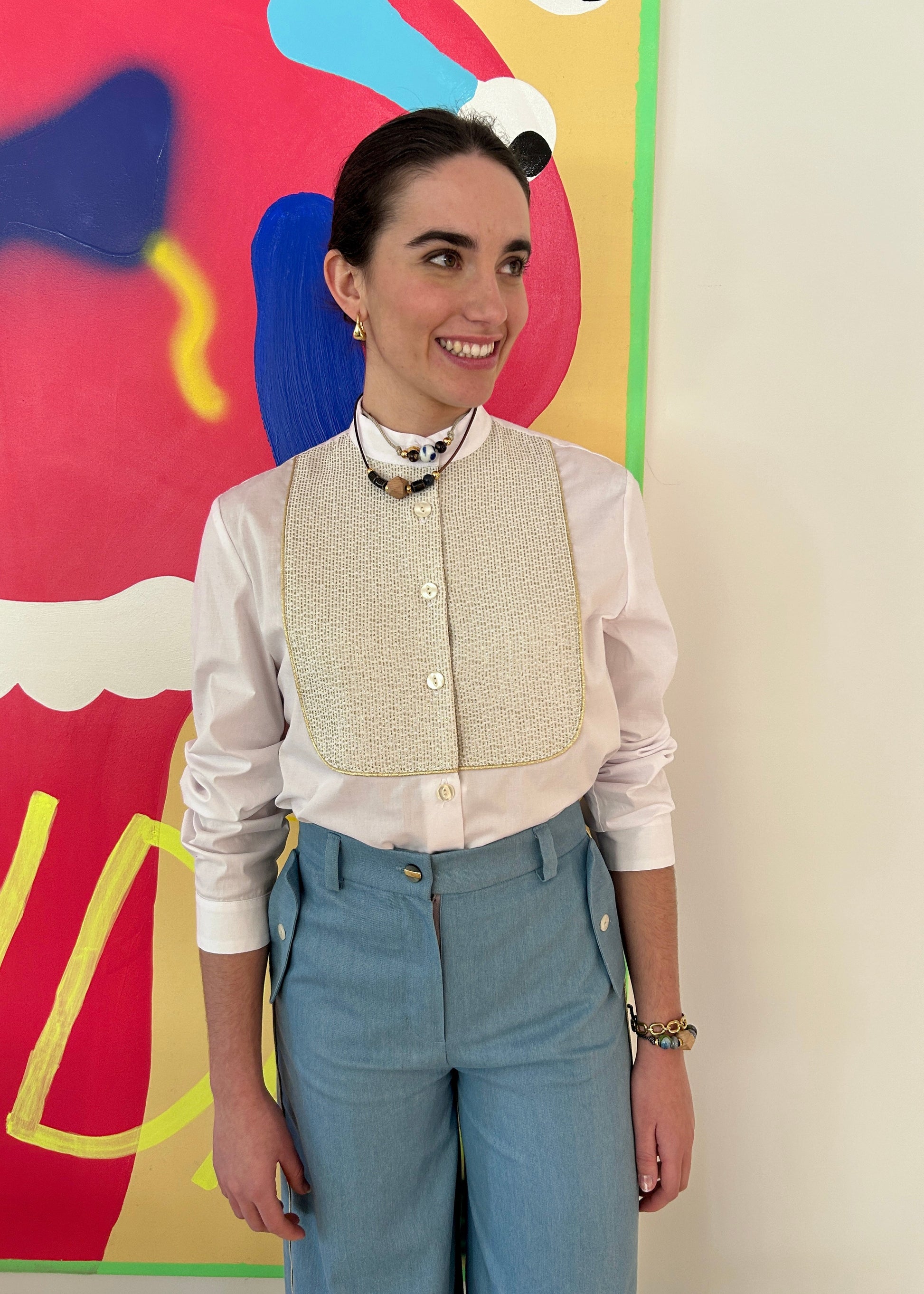 Camisa de corte esmoking y botones* de antiguas mercerías. Ideal como básico de armario atemporal. Combina genial con todas nuestras faldas y pantalones.