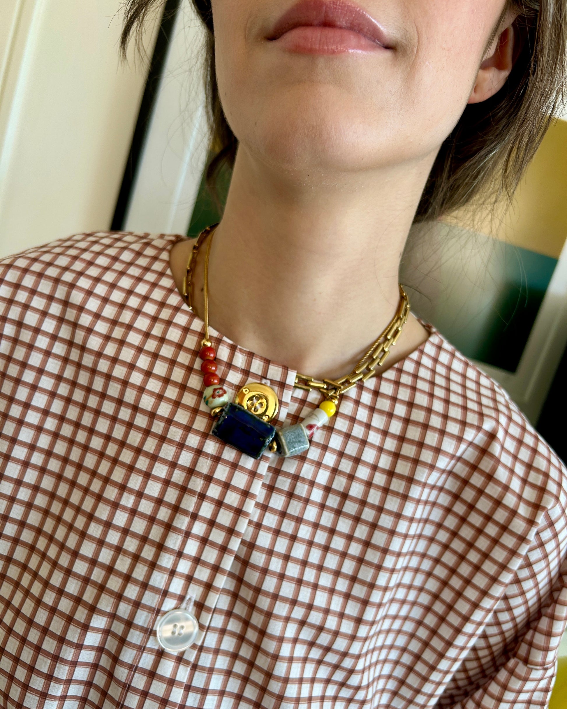 Nota: Algunos collares se han alargado para la campaña, es posible que el que recibas sea más corto que el que ves en las fotos. Si necesitas alargarlos, te podemos dar algunos trucos de estilismo.