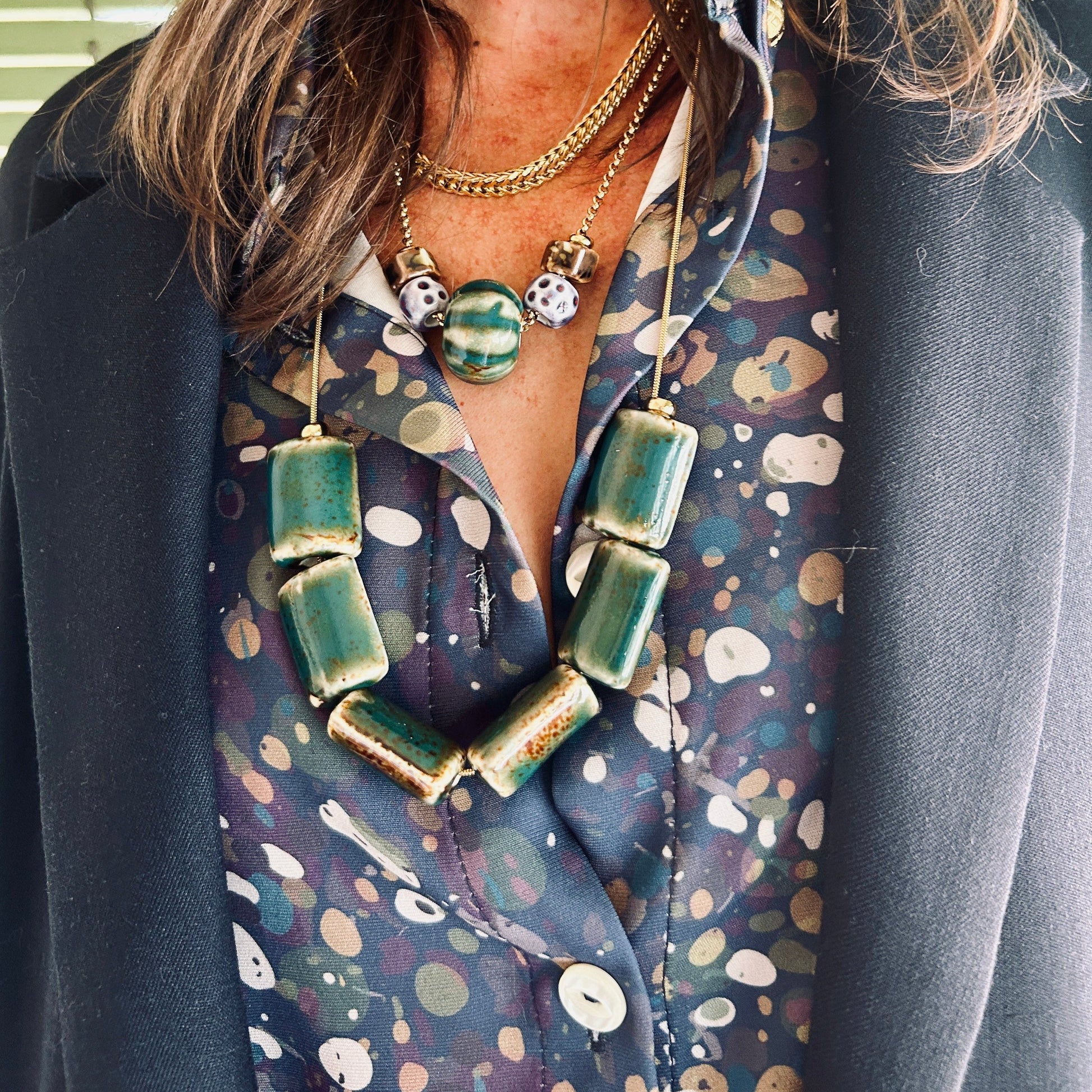 Nuestros Collares son capaces de levantar cualquier LOOK. Están hechos de cerámica pintada y se engarzan a mano.