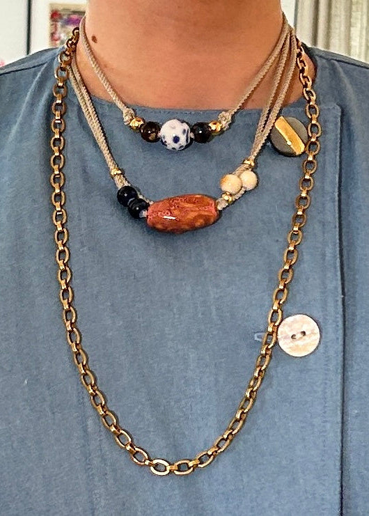Nota: Algunos collares se han alargado para la campaña, es posible que el que recibas sea más corto que el que ves en las fotos. Si necesitas alargarlos, te podemos dar algunos trucos de estilismo.