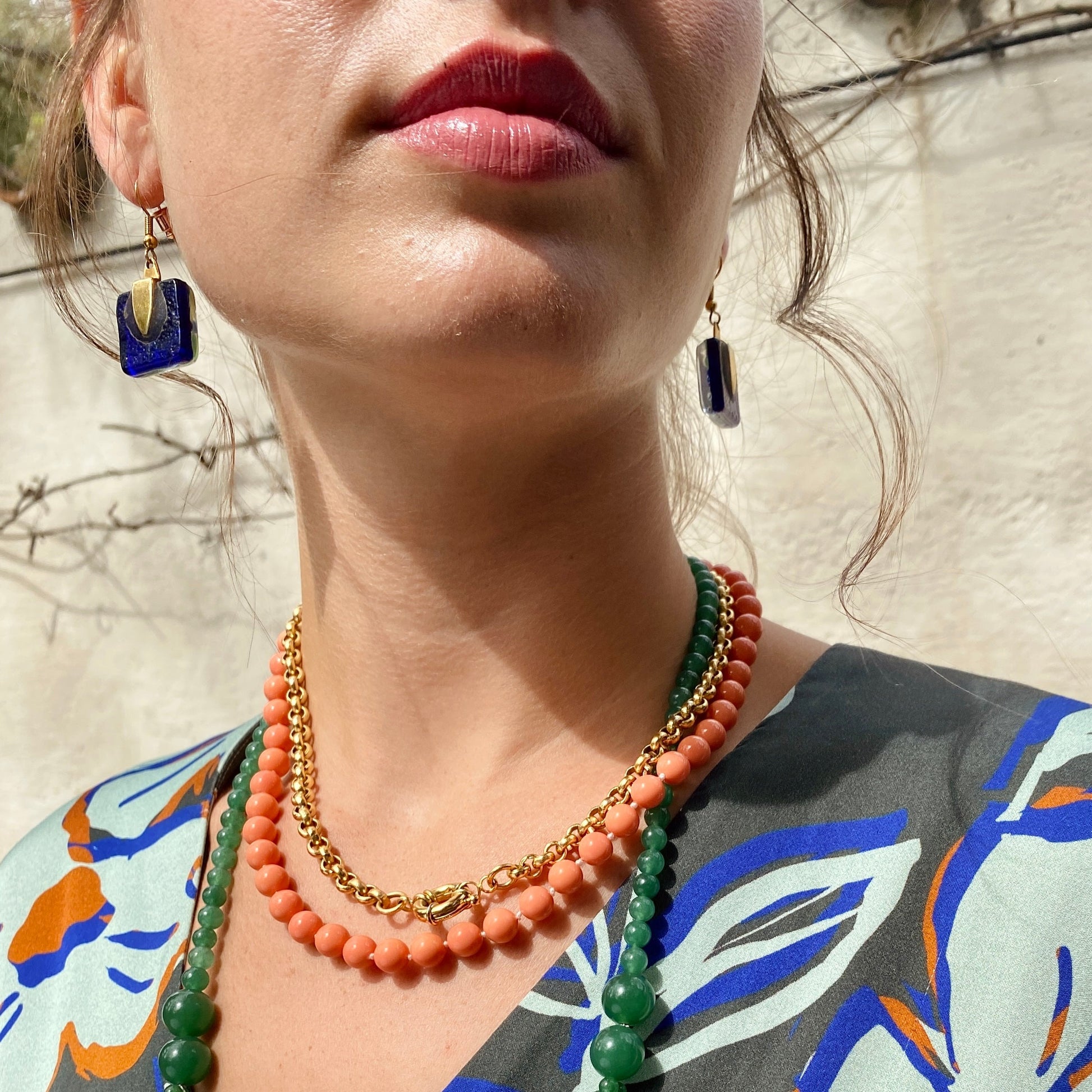 Nota: Algunos collares se han alargado para la campaña, es posible que el que recibas sea más corto que el que ves en las fotos. Si necesitas alargarlos, te podemos dar algunos trucos de estilismo.