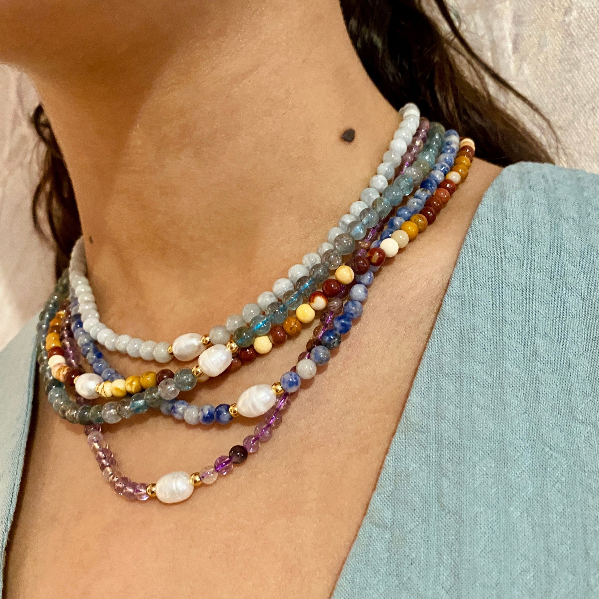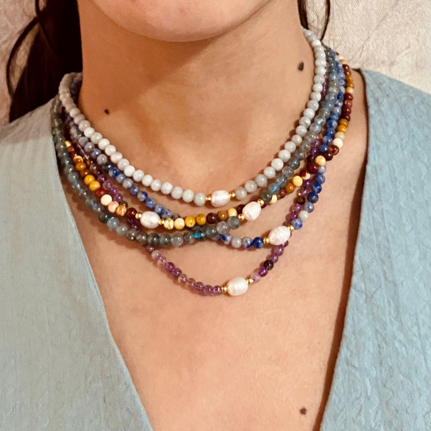 Nuestros Collares son capaces de levantar cualquier LOOK. Están hechos de piedras naturales y se engarzan a mano.