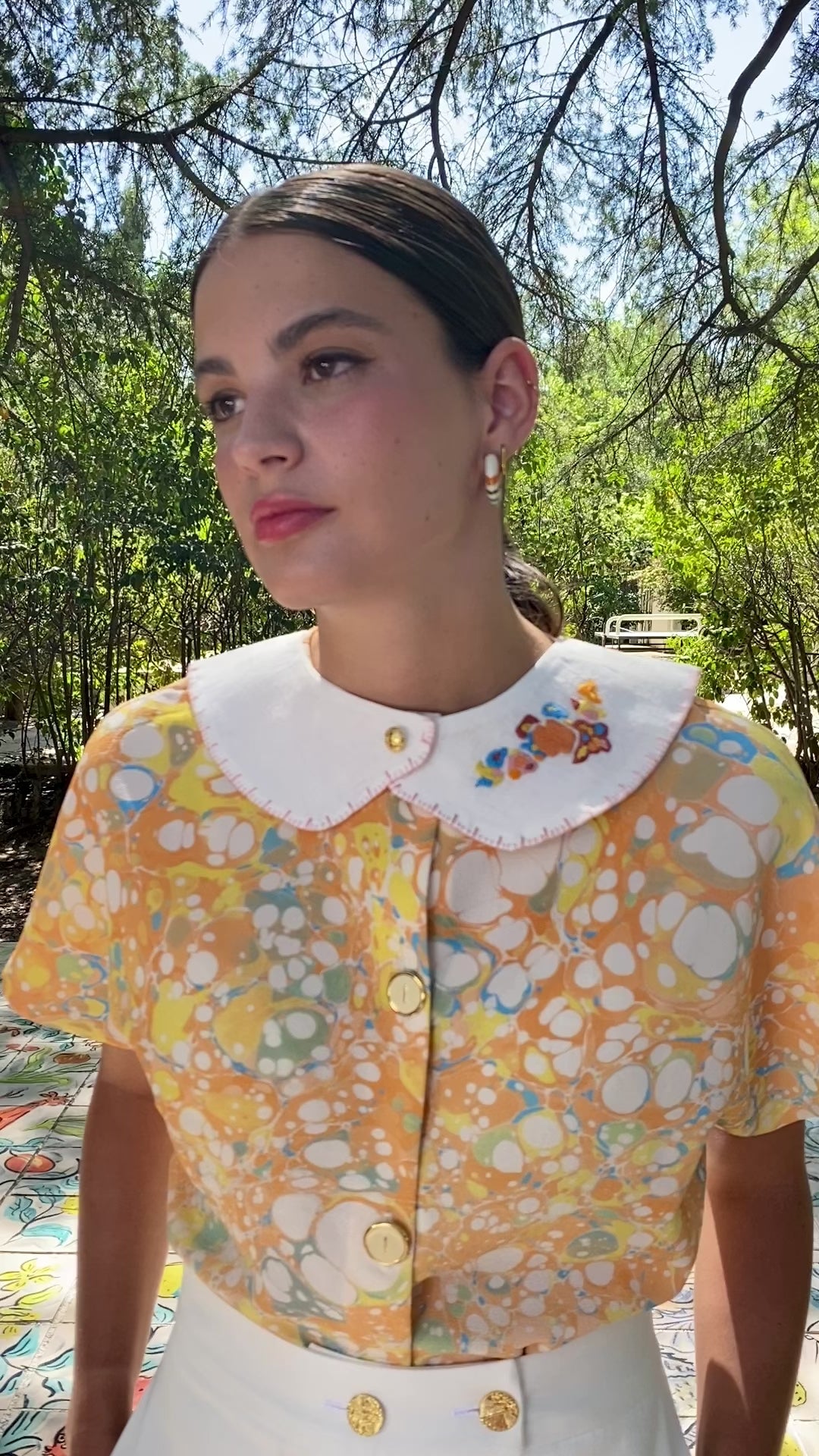Queda IDEAL con la Blusa Sofia Blubbles naranja o como accesorio capaz de levantar cualquier look.