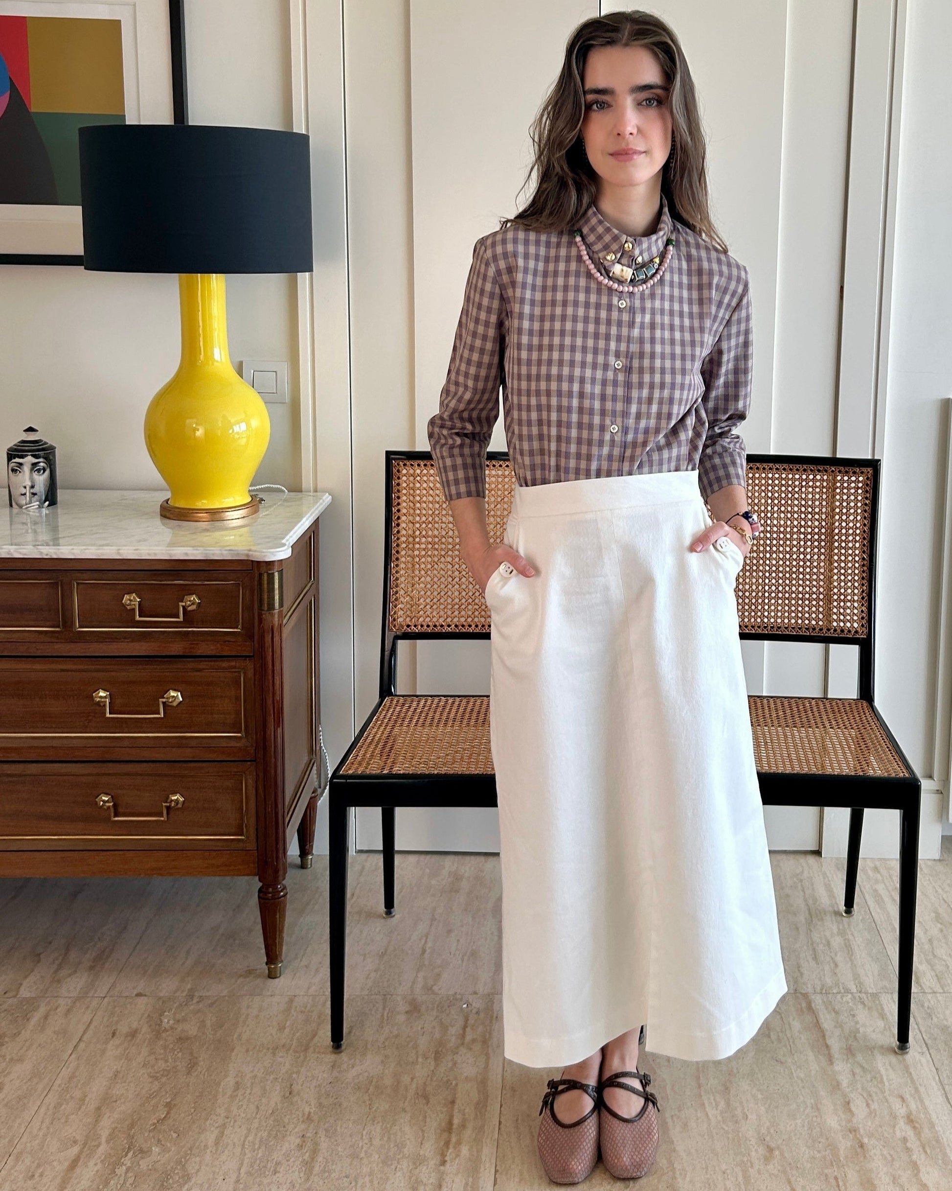 La falda Mirta no puede sentar mejor. Es versátil y te la podrás poner con looks formales o para el día a día. IDEAL como fondo de armario atemporal.